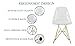 Bullet point: [ERGONOMIC DESIGN] The chair has a gently curved backrest and a subtle dip where the back and seat meet. This ergonomic shape provides firm, structured support that follows the natural curve of the spine. The design emphasizes stability and promotes a comfortable seating experience suitable for extended periods.