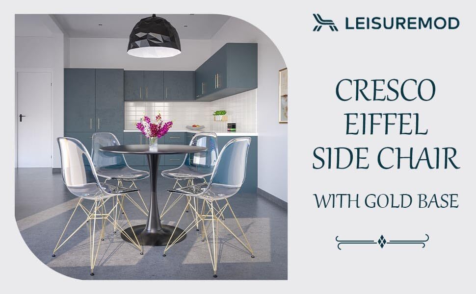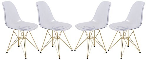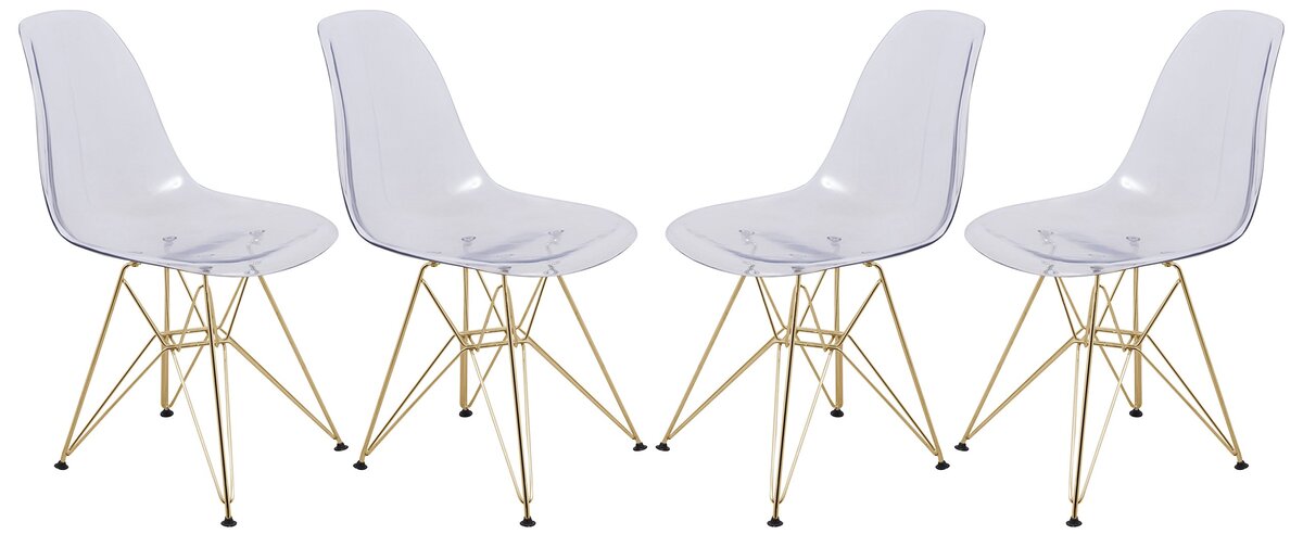 LeisureMod Cresco Dining Chair Molded Acrylic with Gold Metal Eiffel Base and Cu