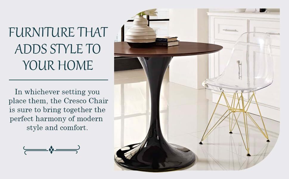 Experience the blend of style and function with the LeisureMod Cresco Dining Chair, crafted as a standout piece for versatile seating. This accent chair features a modern acrylic molded seat with a comfortable curved back, perfect as both a modern home chair and a commercial seating chair. Designed as a lightweight plastic dining chair, it’s easy to move and reposition, while the durable chrome Eiffel base with an X-shaped support offers exceptional stability. Protective rubber floor pads prevent scratches, making it safe for any surface. Whether you’re looking for a chic acrylic accent chair or a comfortable ergonomic chair, this modern acrylic chair delivers on all fronts. With easy assembly, this versatile seating option will elevate your space with timeless appeal and practicality. Choose LeisureMod for quality, design, and lasting comfort.