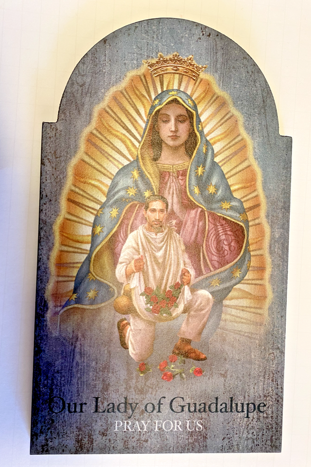 Our Lady of Guadalupe with Juan Diego 12" Arch Wood Plaque, New #AB-170
