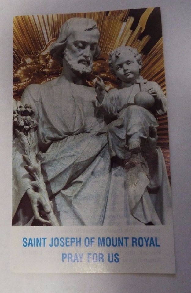 You are purchasing a paper stock prayer guide from Saint Joseph of Mount Royal from the Saint Joseph's Oratory in Montreal Canada. It's made of paper stock which folds in half, when unfolded it measures approximately 7" X 6" (See pictures). It contains prayer to the Holy Spirit, In a Spirit of Union, The Memorare, a special prayer to obtain special favours, witness to the Good News and prayer of the Mass of blessed Brother Andre.