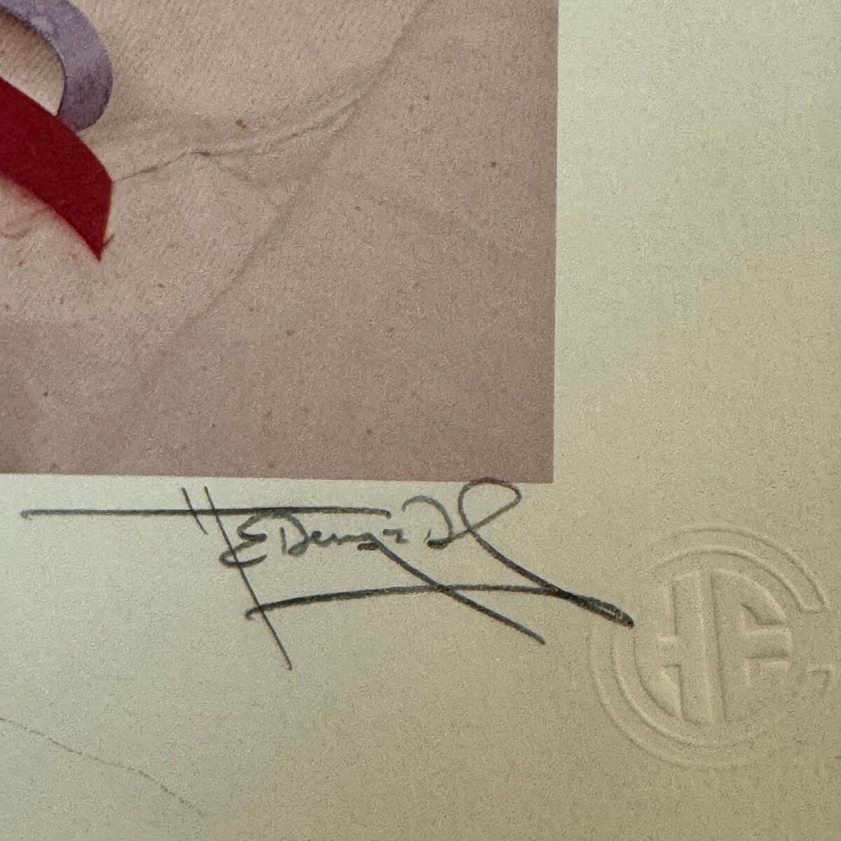 A vivid and heartfelt early 1990s limited-edition lithograph by acclaimed artist Harvey Edwards, titled Satin Rainbows. Part of Edwards' celebrated ballet series, this work captures the quiet poetry of a dancer's world?an overflowing box of satin shoes, each a symbol of devotion and grace.