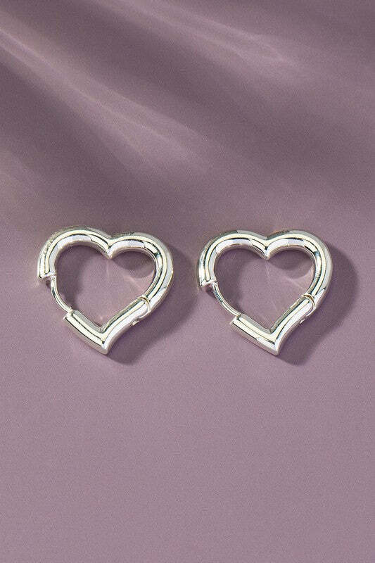 Heart shape hinged huggie hoop earrings. Made of brass. Shiny gold plating.