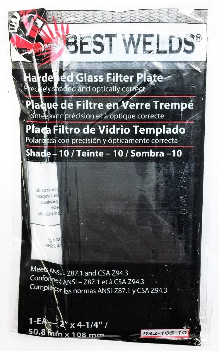 The Best Welds 932-105-10 Hardened Glass Shade Plate is a high-quality accessory designed for heavy equipment. Measuring 2" x 4-1/4", this glass shade plate is built to withstand tough conditions and provide protection for equipment. With a 2 pack included, this product offers durability and reliability for business and industrial use. Whether used for shielding or decorative purposes, this hardened glass shade plate from Best Welds is a valuable addition to any heavy equipment setup.