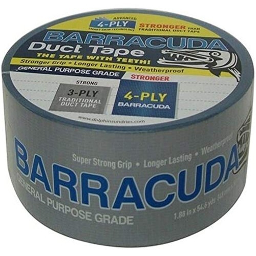 Blue Dolphin TPDUCTBARABLU TP BARA BLU Silver W/Blue Backing Gen Barracuda Duct Tape 2", 54.6 yd L x 1.88 in W, Multi