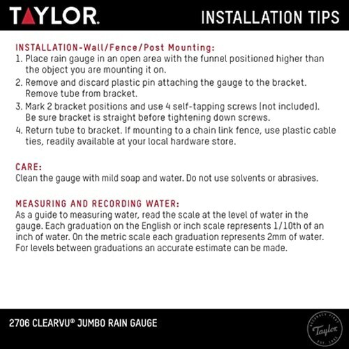 EASY TO MOUNT: The Jumbo Rain Gauge includes a plastic bracket for easy mounting and installation on most surfaces