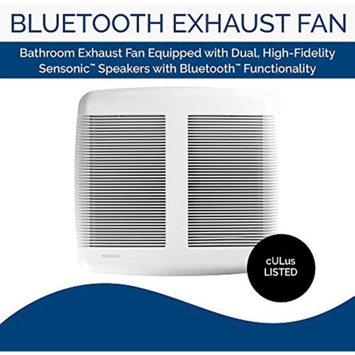 Make your morning routine fun with the Broan Sensonic Bathroom Exhaust Fan with Speaker! This Bluetooth speaker calls for morning dance parties when you're getting ready for your day. This exhaust fan combo effectively clears odors at 110 CFM and operates at 1.0 Sones. It features dual high-fidelity sensonic speakers that are concealed behind the fan grille and can play audio through most Bluetooth-enabled devices. The fan vents bathrooms up to 105 sq. ft. to help prevent from forming. The white polymeric grille fits neatly within the ceiling to provide a cohesive look to your existing decor. This unit includes a 4" round duct with a tapered sleeve and no metallic clatter as well as a unique spacer for easy I-joist mounting. Upgrade your bathroom with the Broan Sensonic Bathroom Exhaust Fan with Speaker today! Bath Fan meaures 13" x 14" x 8.625". Housing dimensions measure 10.5" x 11.375" x 10.5".