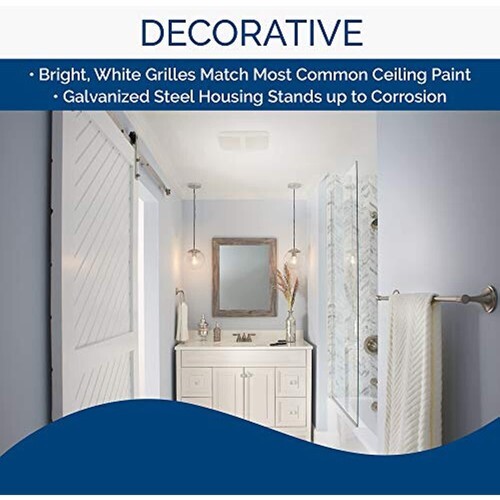 FAN COMBO: Exhaust fan with built-in Bluetooth Dual High-Fidelity Sensonic Speakers is powerful enough for rooms (including bathroom) up to 105 sq. ft.