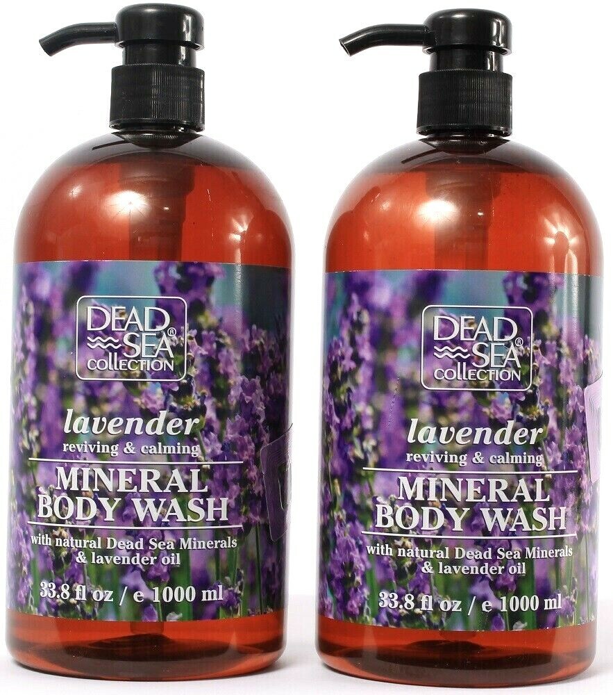 2 Bottles Dead Sea Collection Lavender Oil Calming Mineral Body Wash With Pump 33.8 fl oz