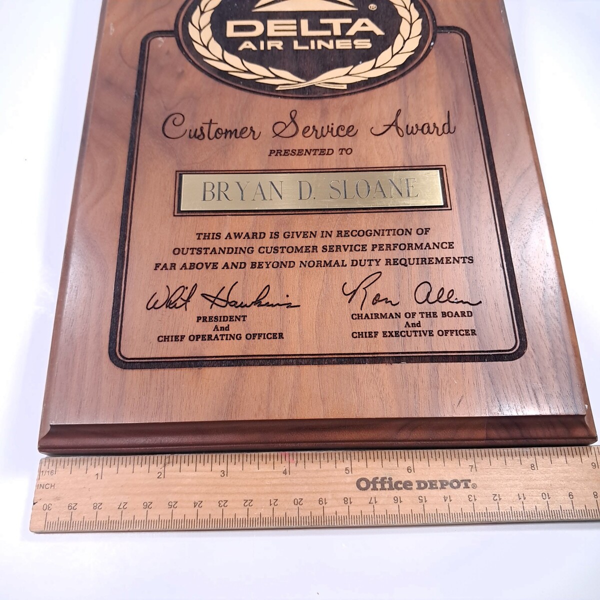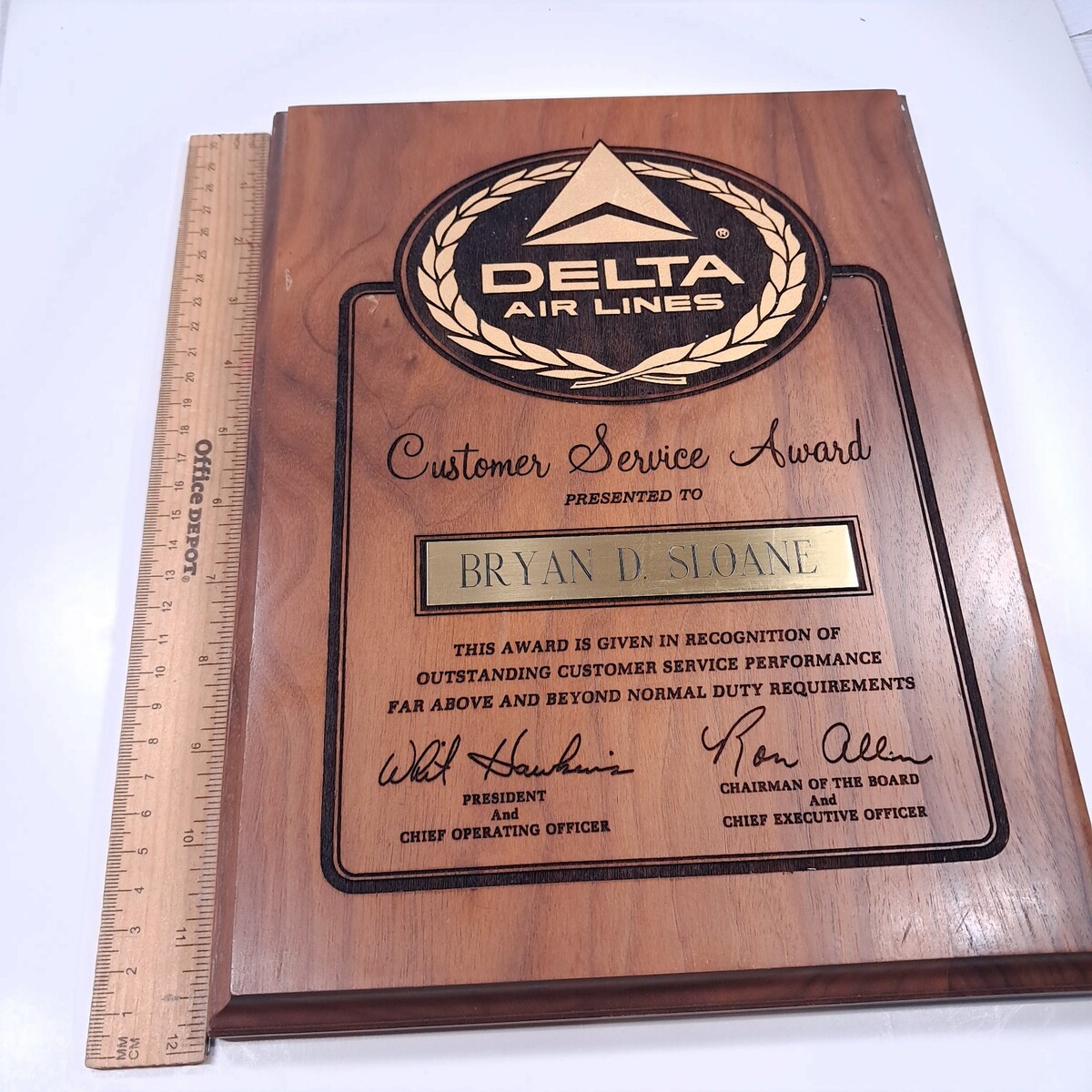 Vintage Delta Airlines Customer Service Award wooden plaque air lines Vintage