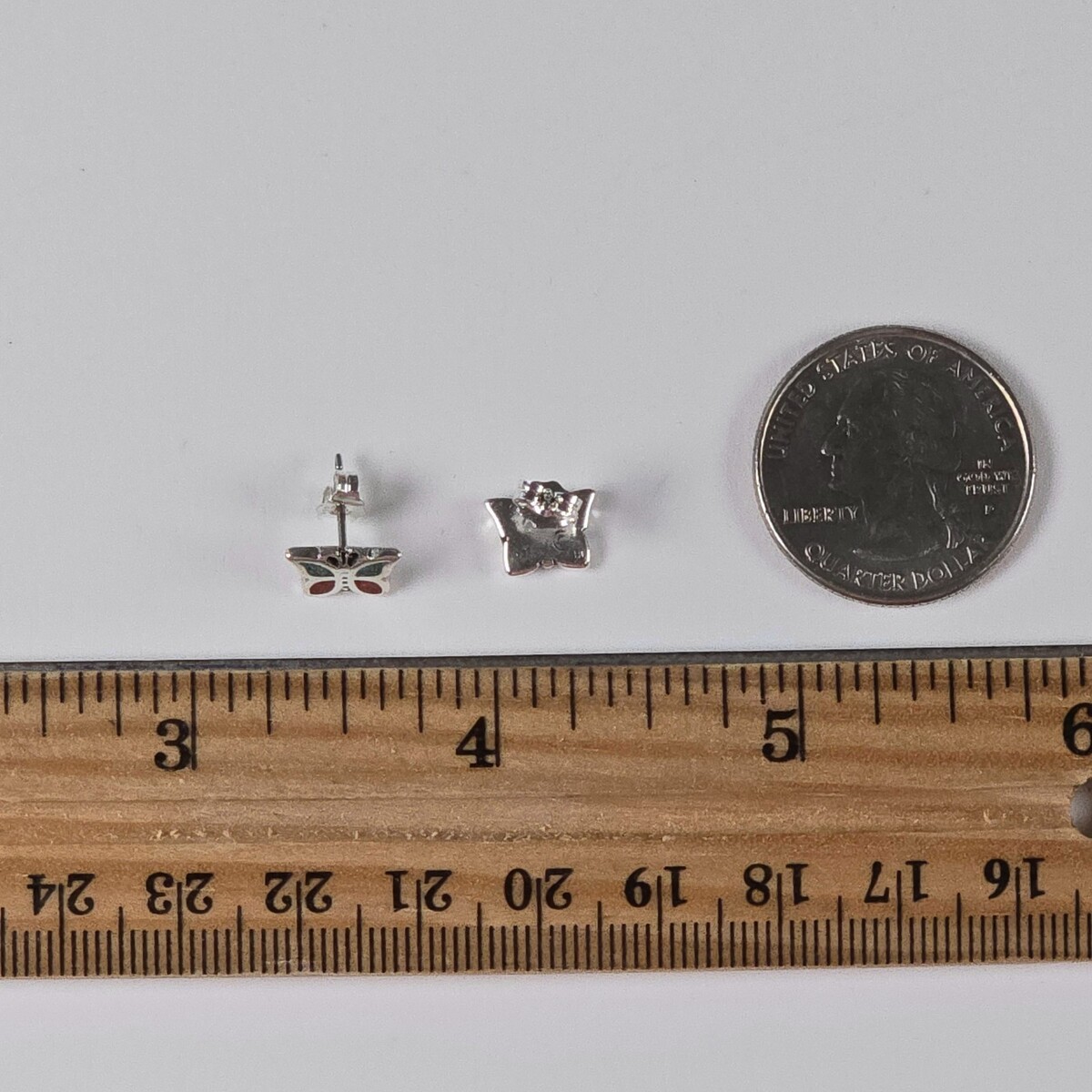 These Sterling Turquoise Butterfly Earrings are handmade in the United States, featuring a beautiful turquoise stone set in sterling silver. The earrings have a stud style, with a butterfly closure and a flush setting. The design of the earrings is inspired by Native American jewelry, and the use of natural materials adds to their unique charm. The blue turquoise stone, along with the secondary coral stone, adds a pop of color to the overall design, making these earrings a stylish and meaningful accessory for any woman's jewelry collection.
