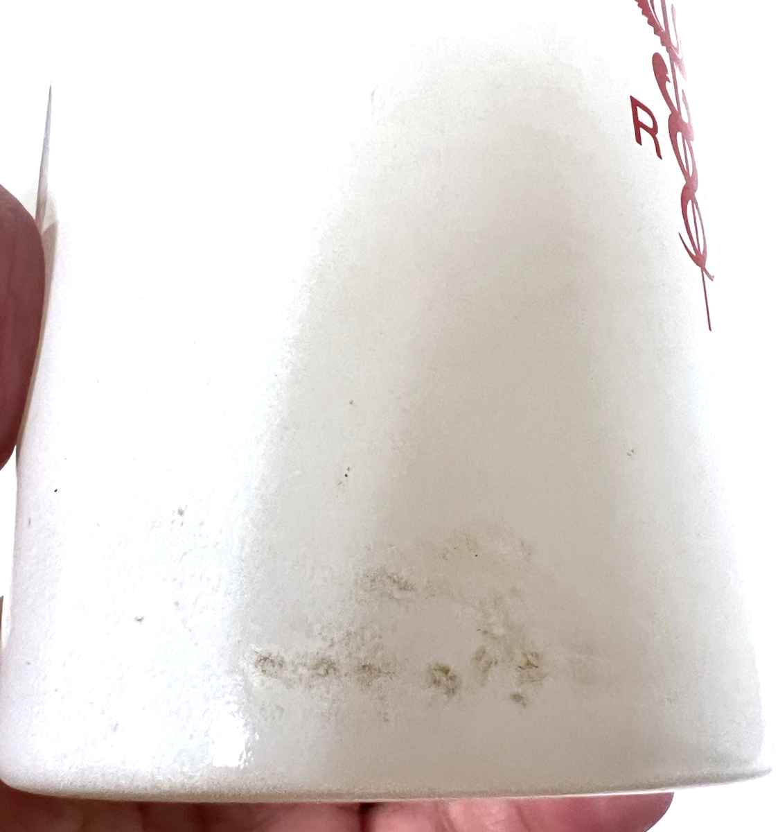 Coricidin "D" Medical Cold Tablets Plus Decongestant Action White Drinking Glass it stands 4 1/8 and the base is 3 inches No chips or flakes there is however a few small darkish dots on the bottom of one side