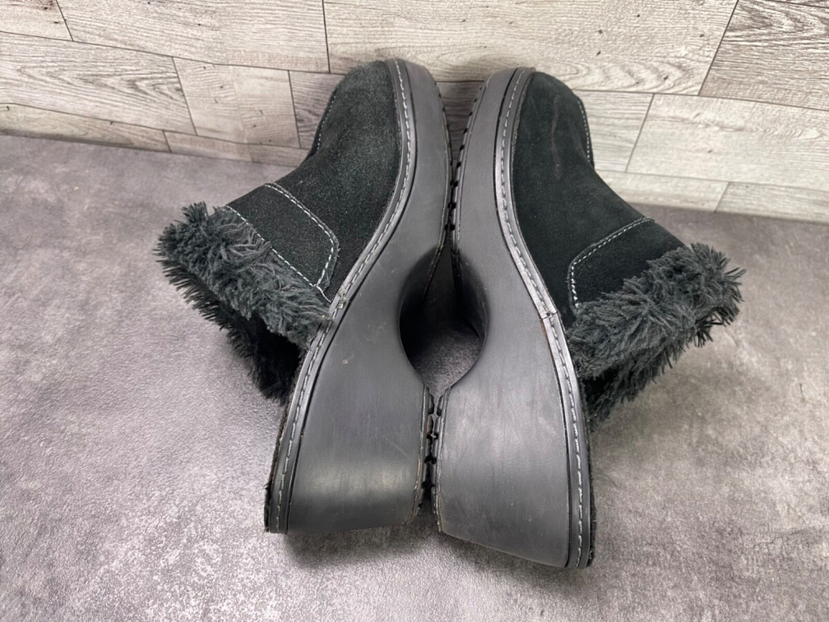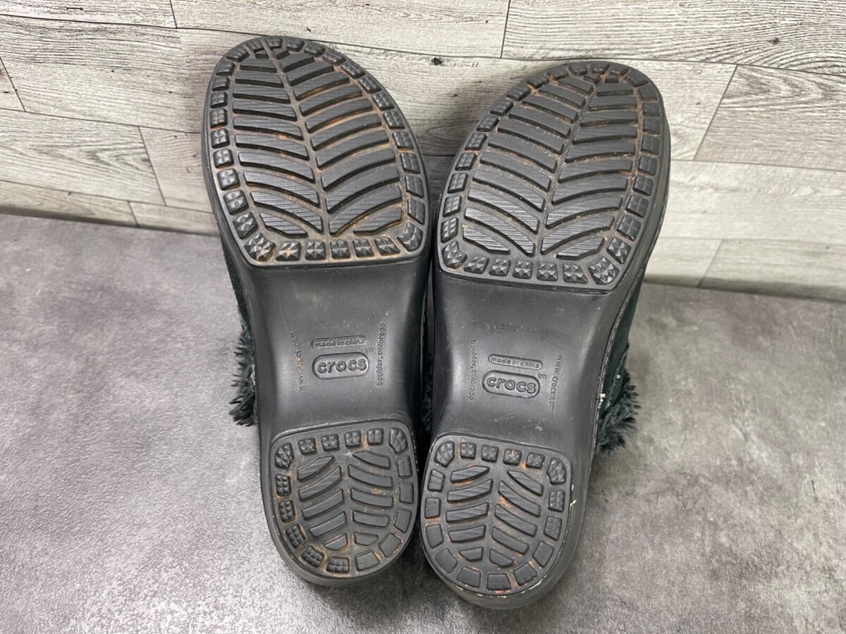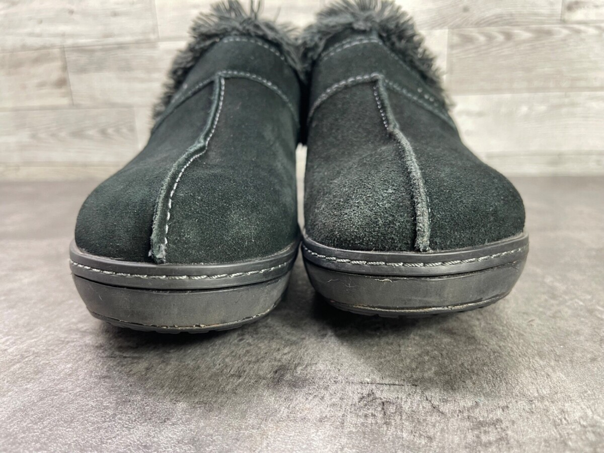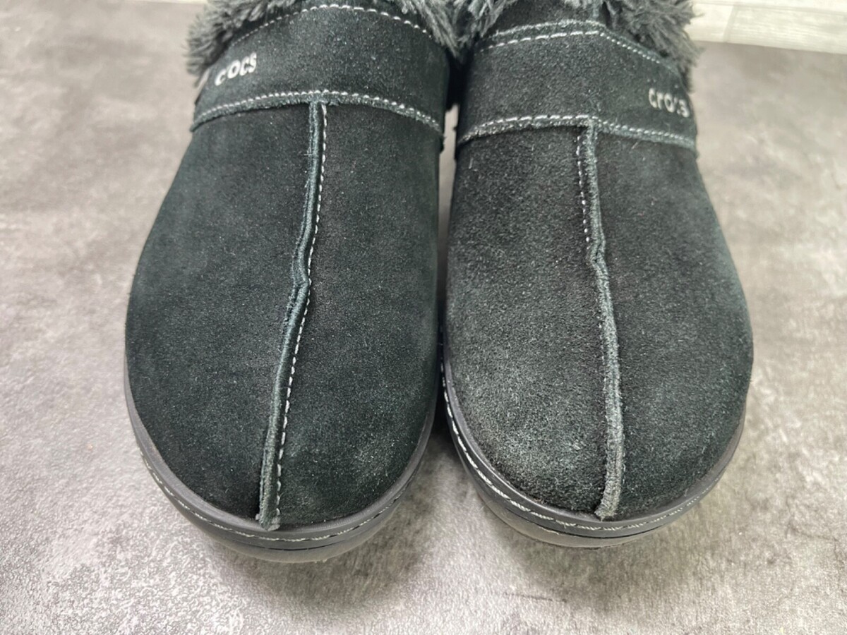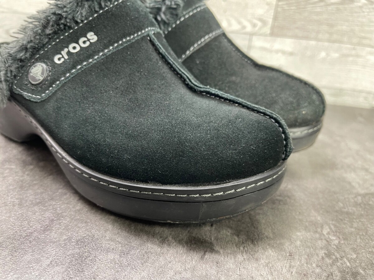 Crocs Mules Clogs Women 6 M Cobbler Shoes black Suede Fur Trim Slip On Heel