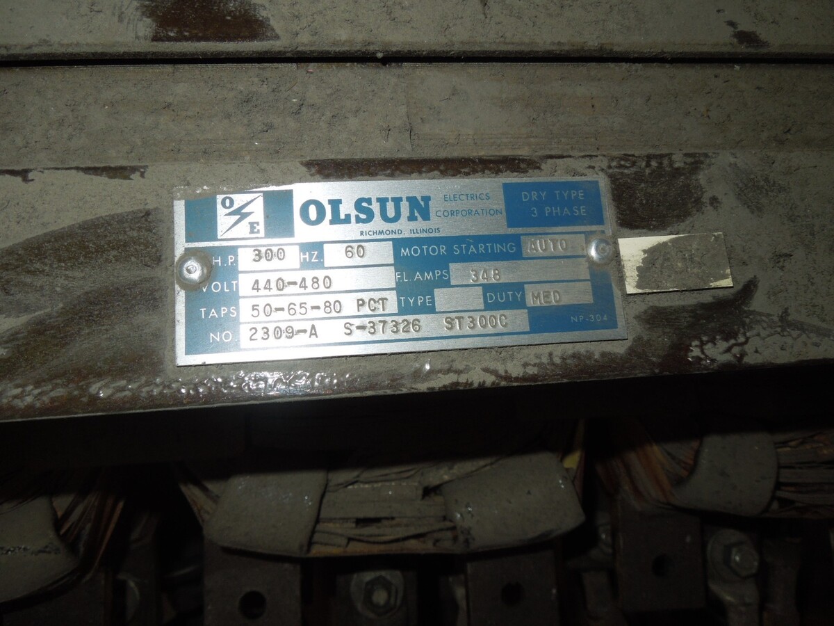 Olsun 2309-A S-37326 ST300C 300hp 3ph 480V 348FLA 3 Coil Autotransformer Used