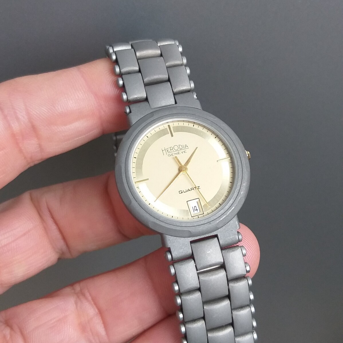 Vintage Swiss Electronic Quartz Watch Herodia 1980’s NOS Unworn Titanium