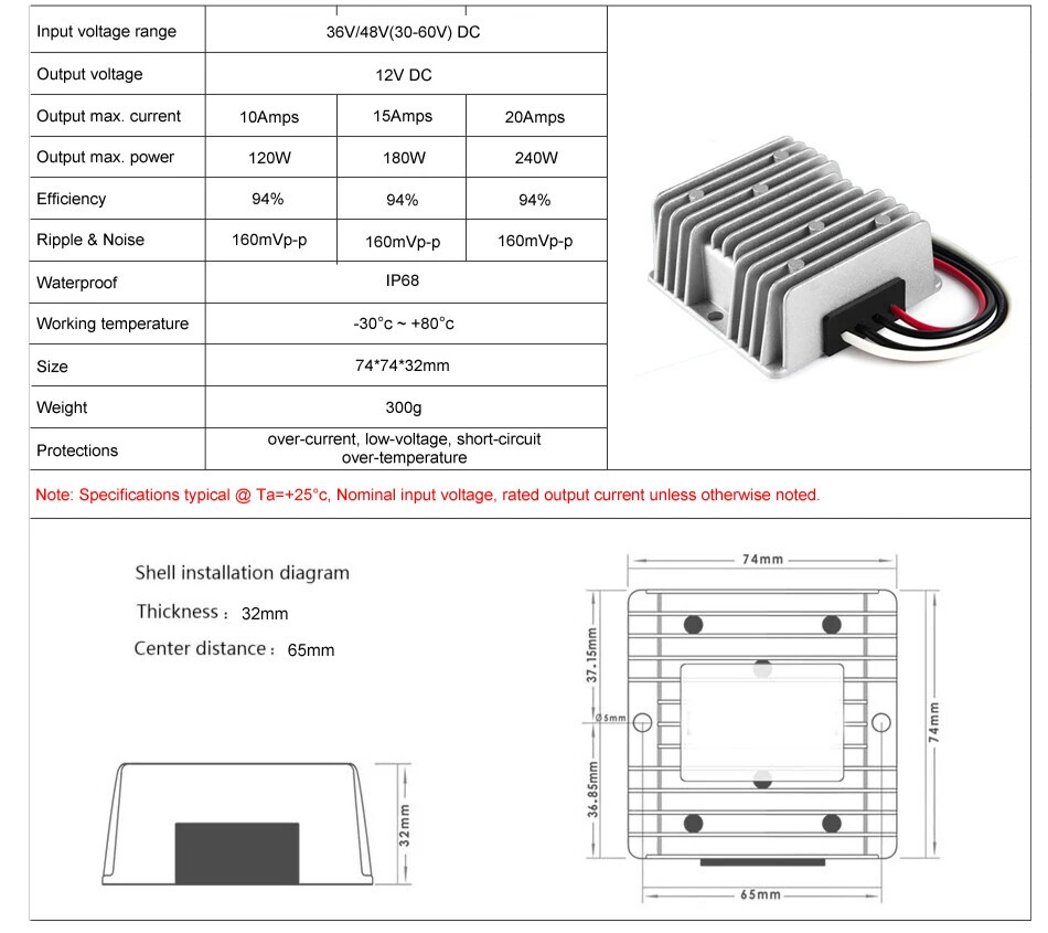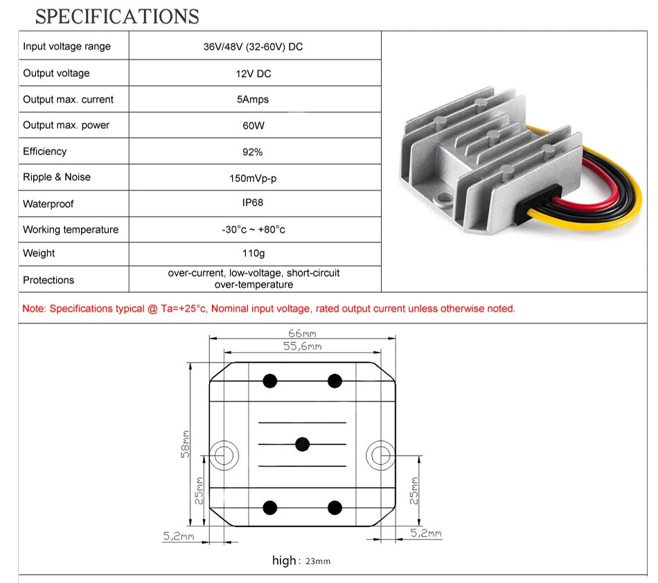DC 36V 48V TO 12V 13.8V 5A-30A Power Converter Step Down Voltage Regulator Golf