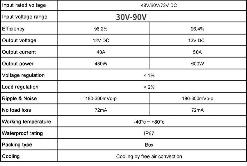 Buck 40-90V 72V to 12V 60A 50A 40A 30A 20A 15A 10A 5A Step Down DC DC Converter Regulator 48V 60V Voltage Reducer Golf Cart