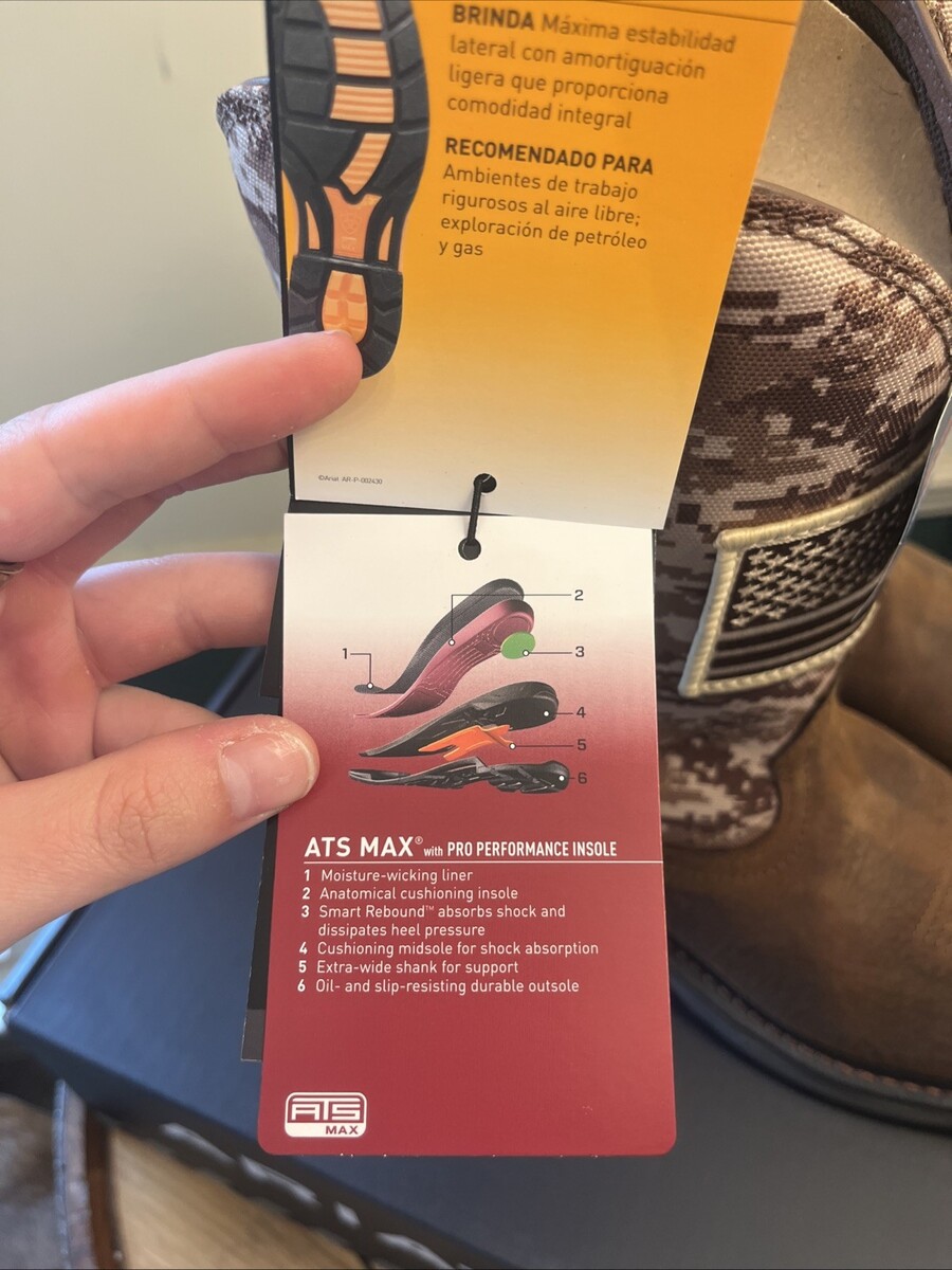 New Mens ARIAT WORKHOG PATRIOT Brown Leather Cowboy Work Boot, 10.5 D (med)