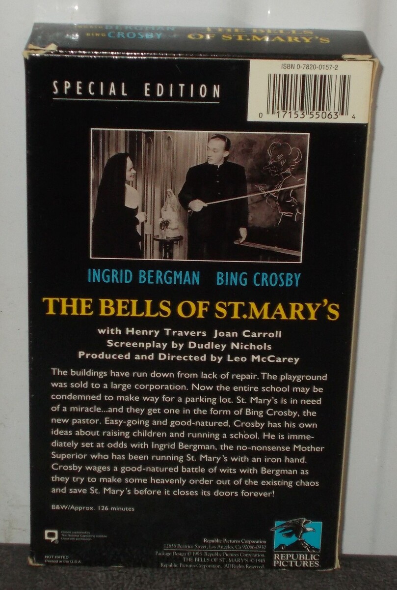 This is the Special Edition VHS of the beloved classic film, The Bells of St. Mary's, starring Hollywood legends Ingrid Bergman and Bing Crosby.