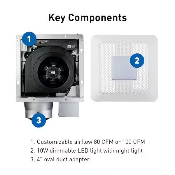 Customizable Airflow: Features Pick-A-Flow technology that allows you to select your desired airflow from 80 or 100 CFM at the flip of a switch for your room size and usage needs