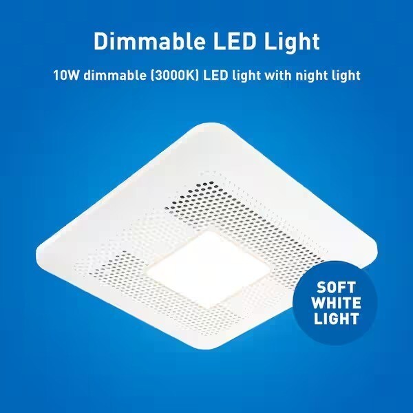 Bathroom Vent Fan with Light: Equipped with a revolutionary DC/ECM motor, this ultra quiet ventilation fan features a 3000K dimmable LED Chip Panel with low power nightlight