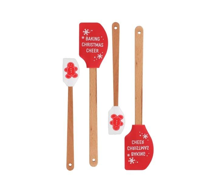 Baking Christmas Cheer Wooden Spatula Set, 4 Pieces, Red and White |