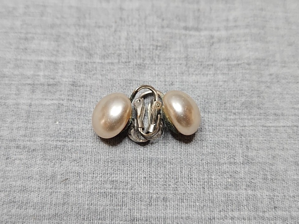 Vintage Marvella Clip On Pearl Costume Jewelry Earrings, 1/2'' Diameter