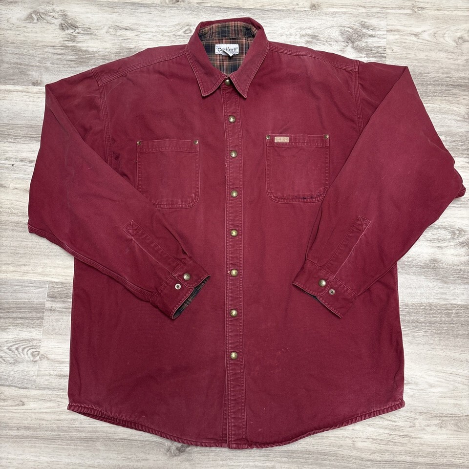 Carhartt Canvas Shirt Jacket Mens XL Tall Dark Red S96 Flannel Lined Snap Front