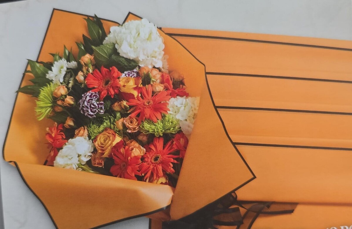 Lot Of 2 Ashland Floral Wrapping Paper Orange/Black Pattern 12 pieces (24 total)