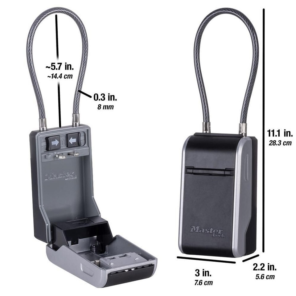 The Master Lock 5482D large key lock box with removable cable sets a new standard for convenient security. It offers tried-and-true protection you can count on and easy operation for anyone accessing your home or property. Based on our previous model, this key safe is larger than others, with a storage capacity that protects not only your keys, but also fobs and access cards. This redesigned key safe simplifies and streamlines day-to-day life, helping you to move easily between properties. The new innovative built-in bin holds your keys in place to prevent jamming, and has ergonomic dials, making the lock box easy to open even with one hand. The solid metal body means your keys, fobs, and cards are safe from both harsh weather and tampering attempts. And, a removable cable shackle, to fit more applications and install the lock box wherever you need a dependable way to share keys. Whether it is your home, business or job site, this key box offers a reliable and convenient solution for granting access to your trusted people.