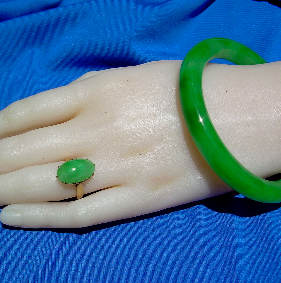 Earth mined Imperial Green Jadeite Jade Semi translusent Deco Engagement Ring