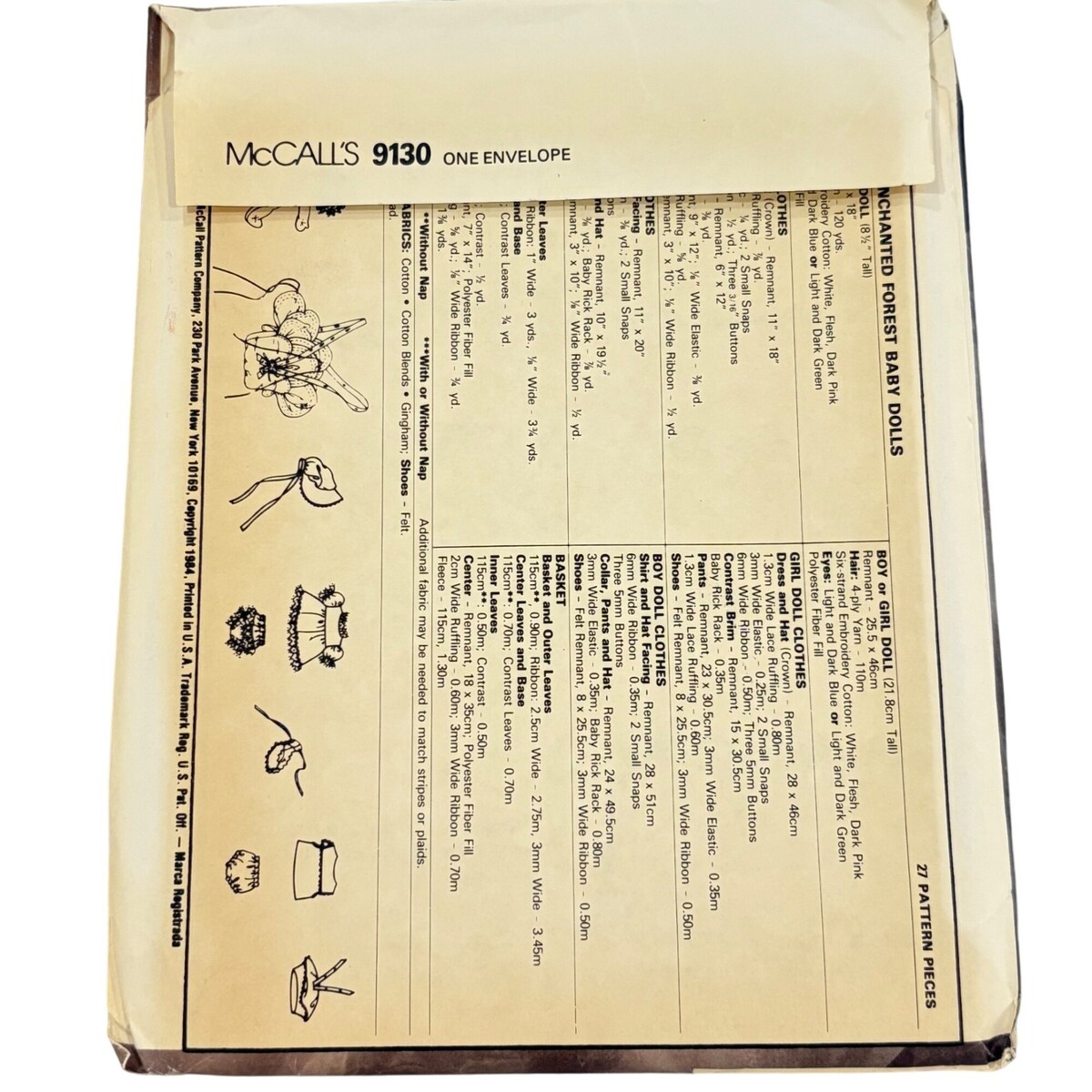 McCalls Crafts Pattern 9130 Enchanting Friends Leafy Carry-All Dolls