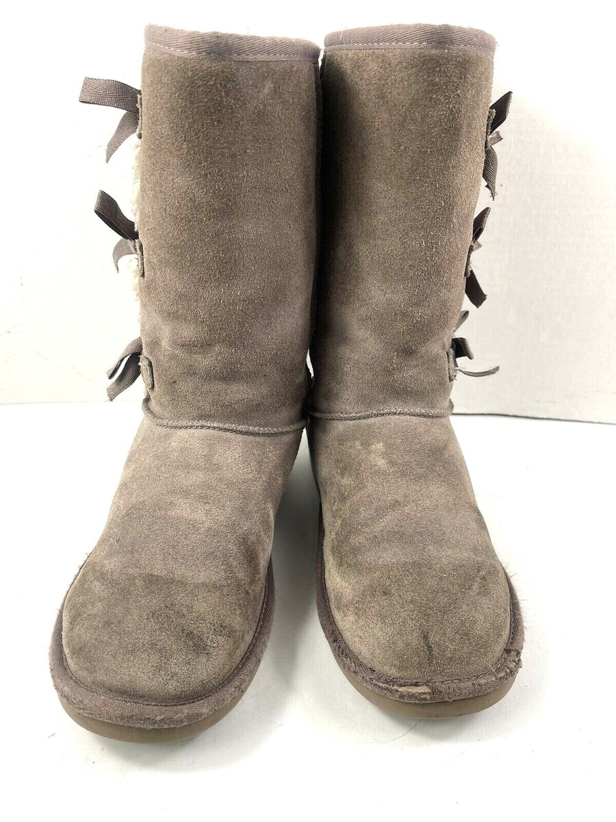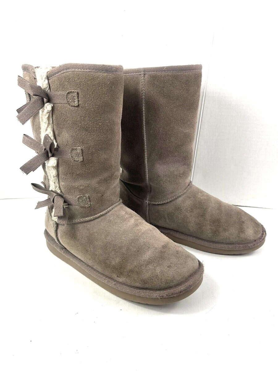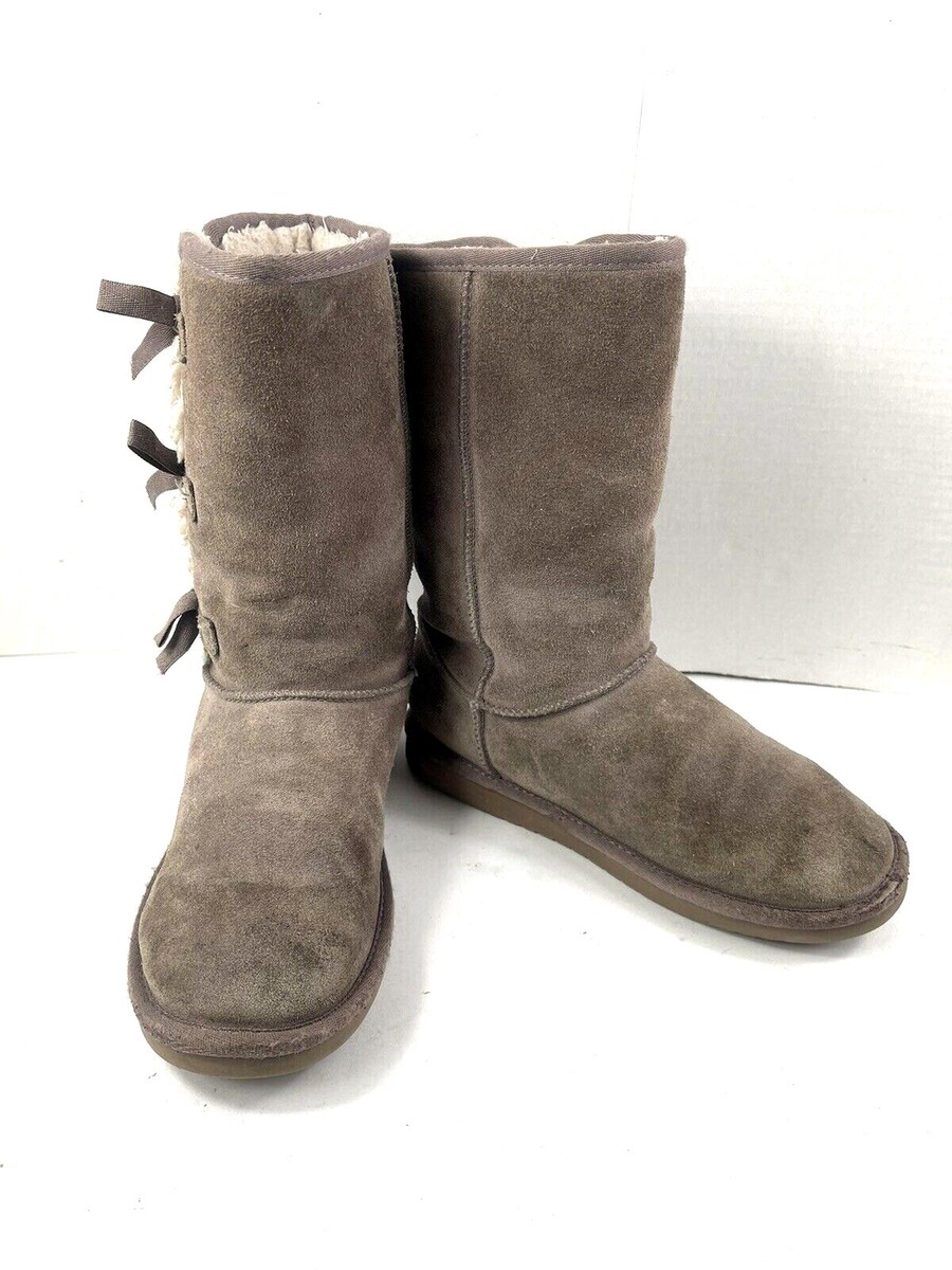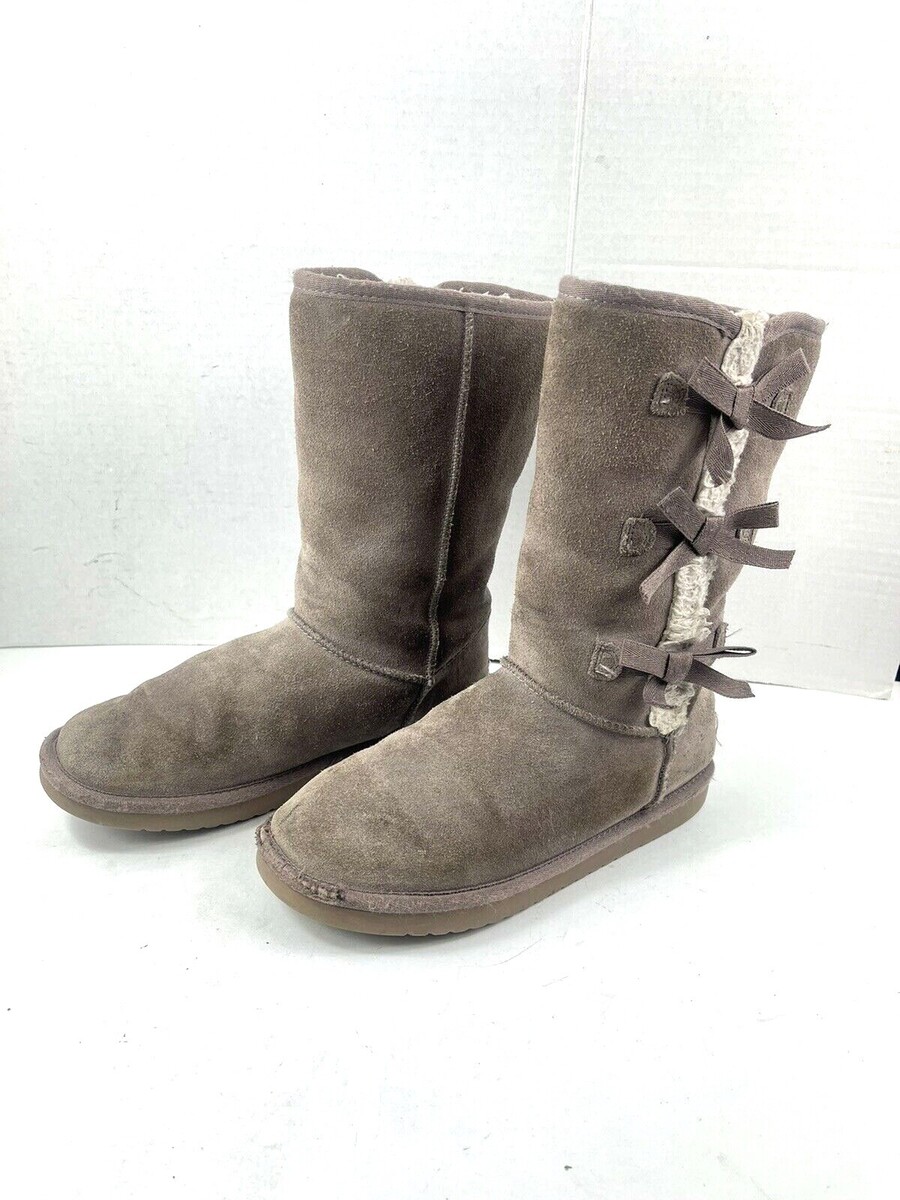 Koolaburra by UGG Boots Big Girls 5 M Victoria Bow Shoes Grey Suede Winter Snow