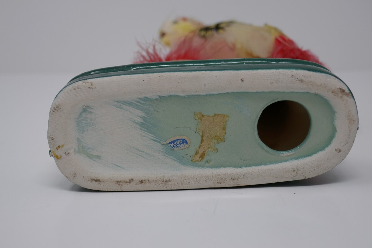 MCM Mid Century Porcelain Mom & Baby Birds with Real Feathers Figurine Japan
