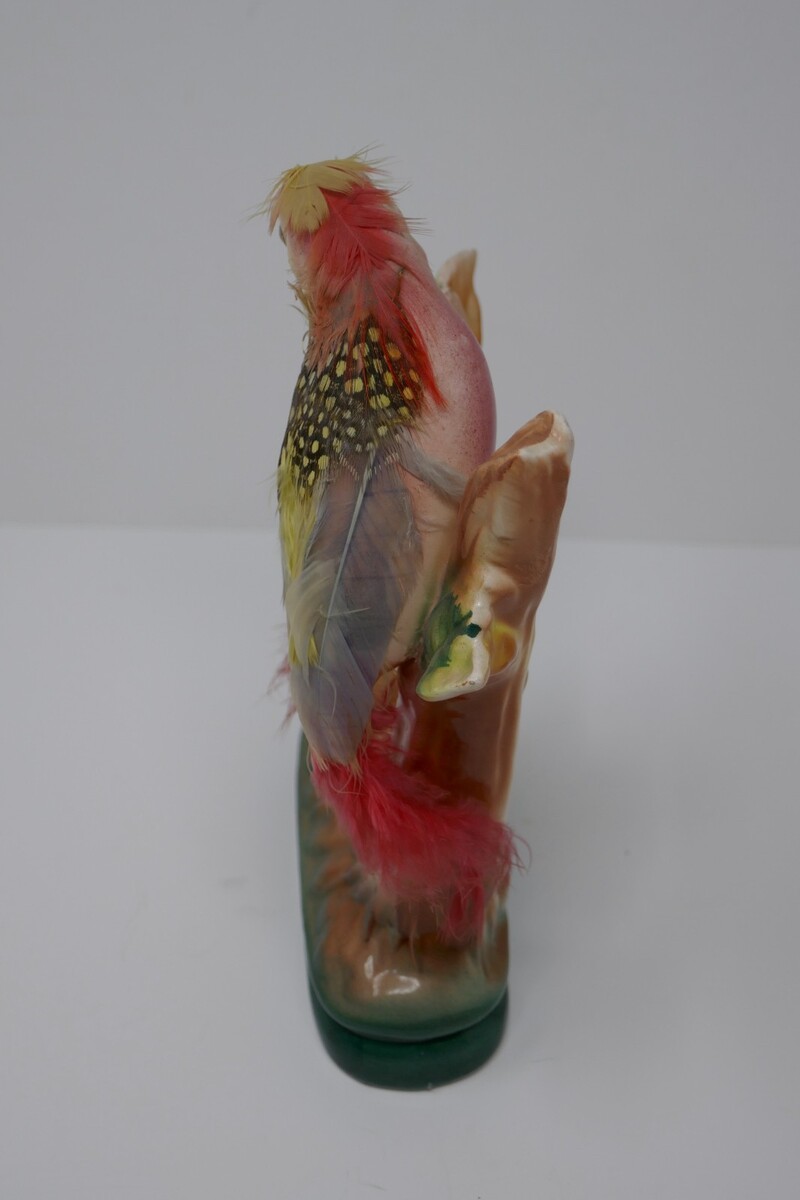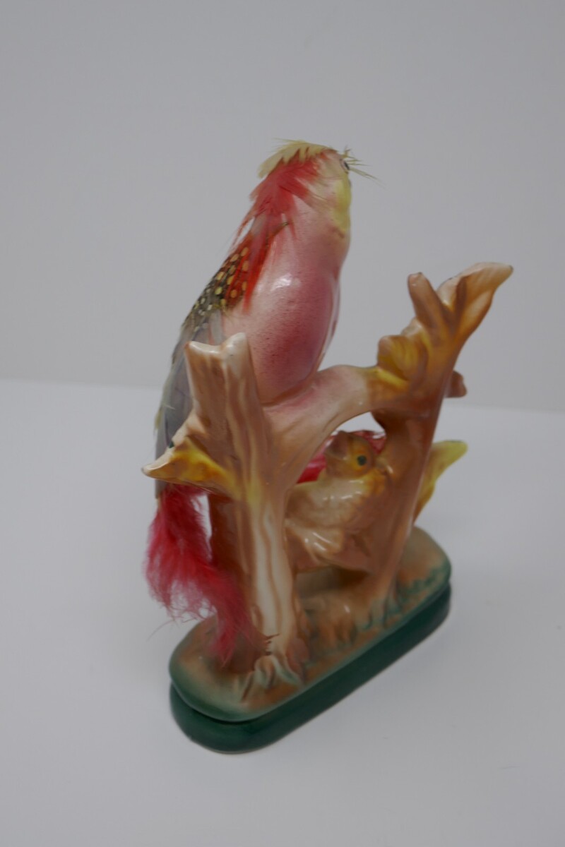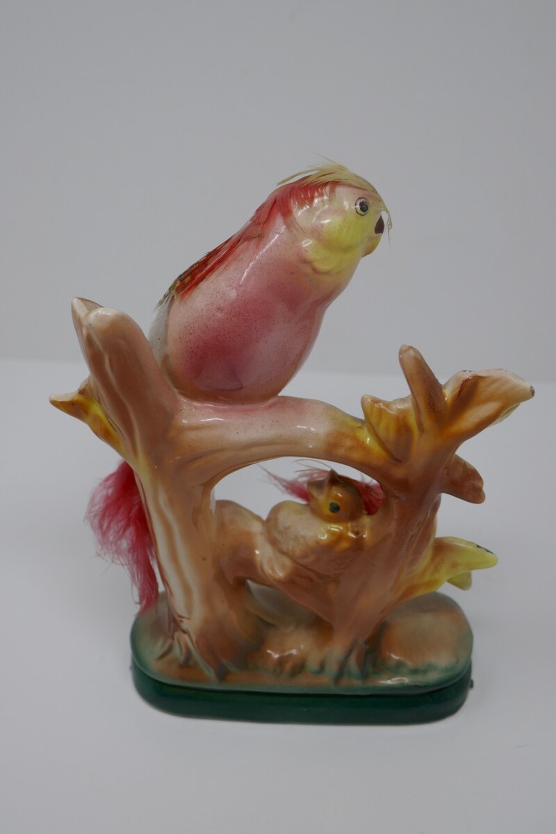 This figurine from Japan showcases beautifully crafted porcelain mom baby birds with intricate details and real feathers, making it a unique and charming addition to any collection. Measuring approx. 7" tall and 4.25" wide, these have minimal wear. The figurine captures the essence of vintage design with its mid-century aesthetic, while the porcelain material and Japanese craftsmanship add an elegant touch to any decor. Perfect for bird lovers and collectors alike, this figurine is a timeless piece that adds a touch of nature and nostalgia to any space.