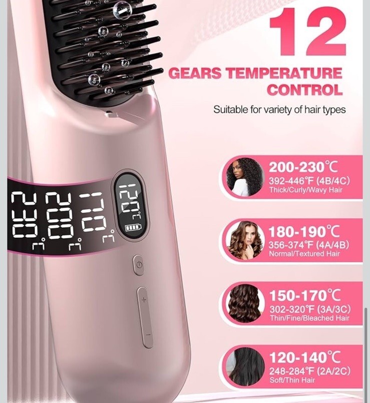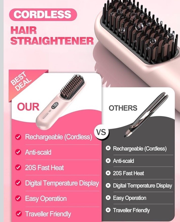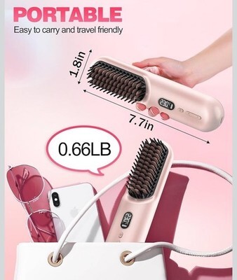 Cordless Hair Straightener Brush for Travel,Mini Hair Straightener Comb.