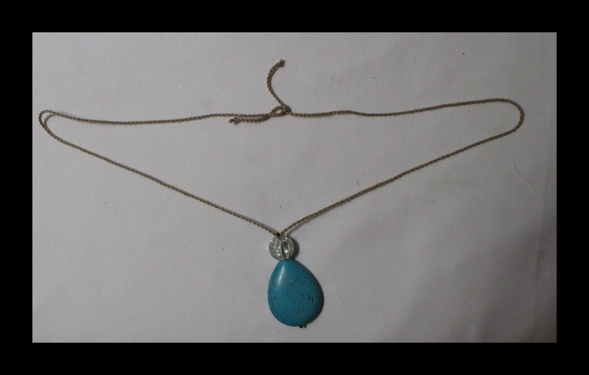 Handcrafted Jute & Turquoise Colored Stone Necklace 23 N062