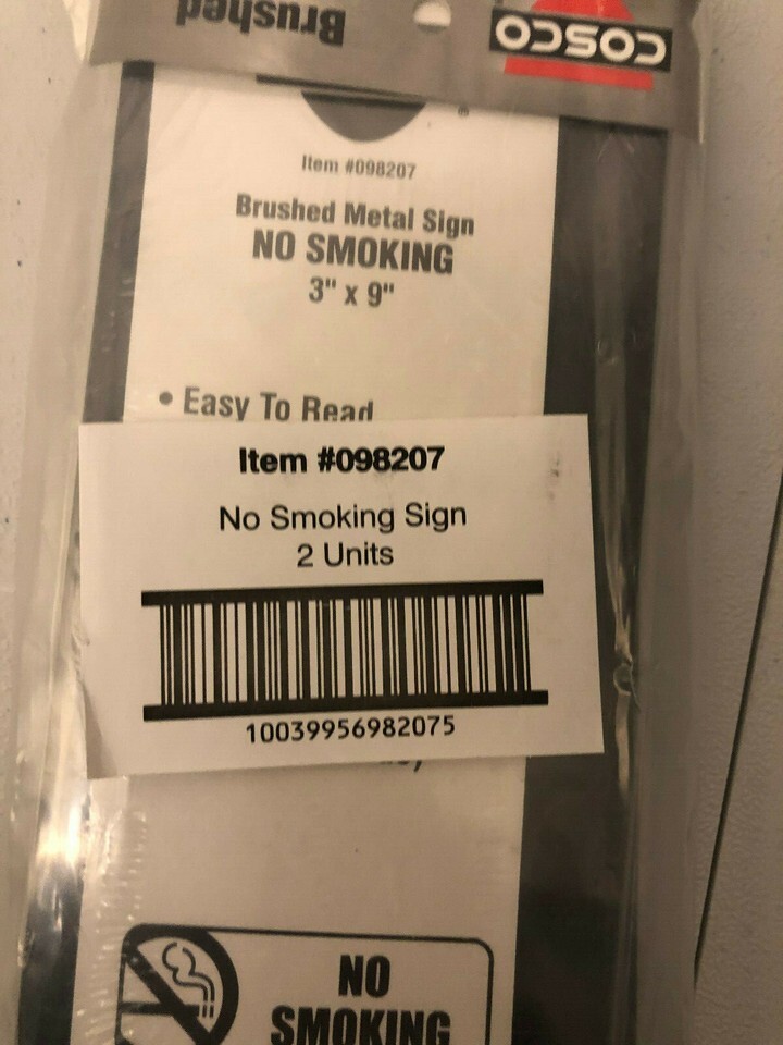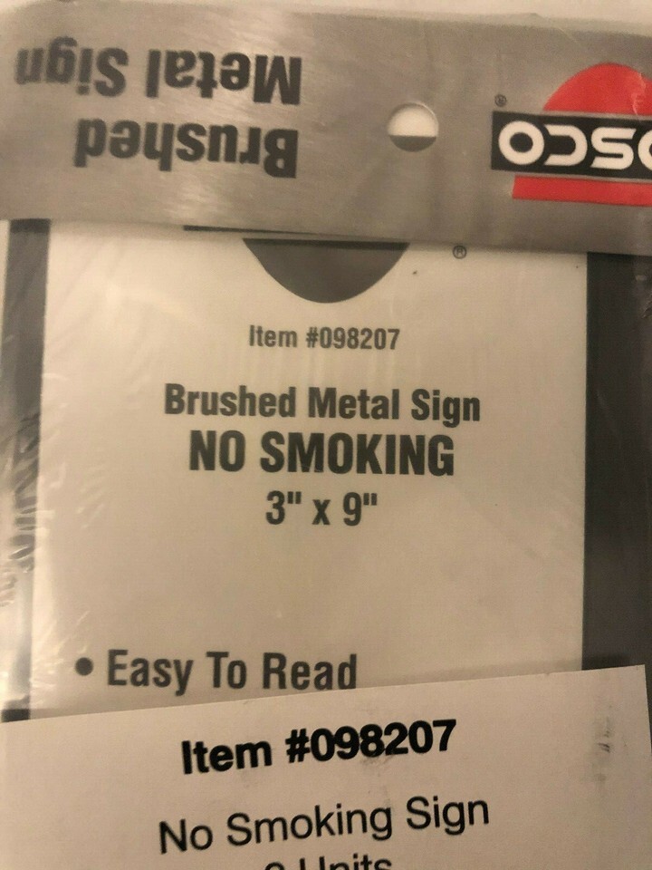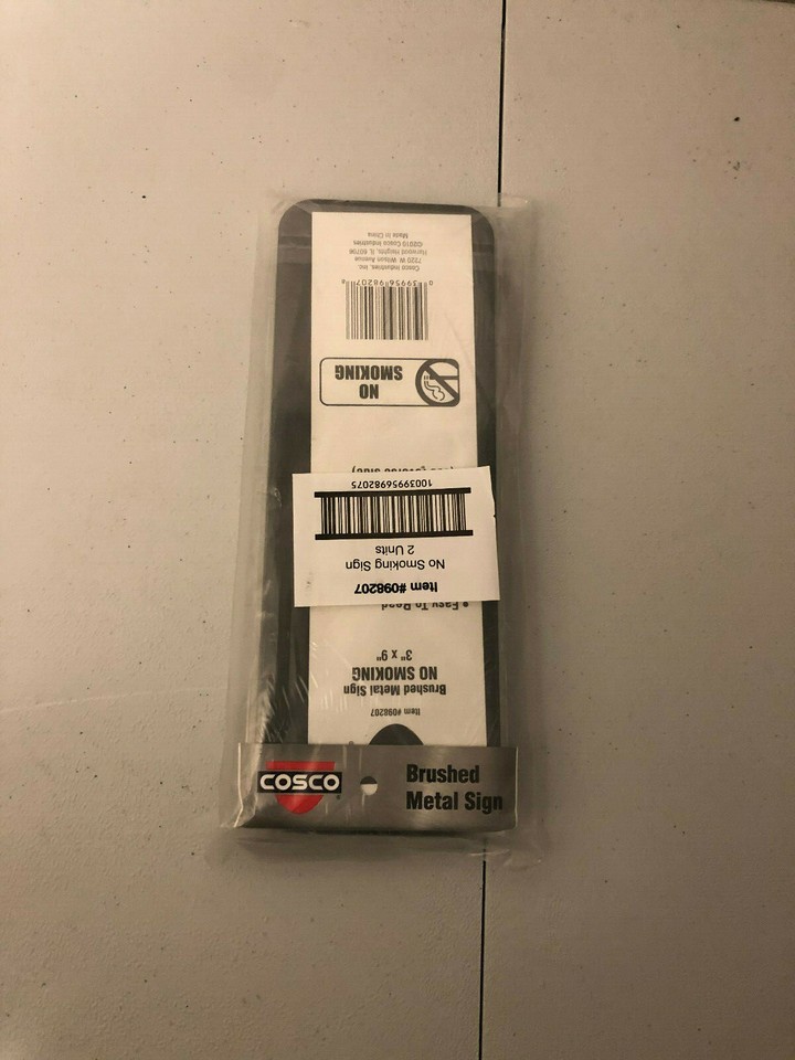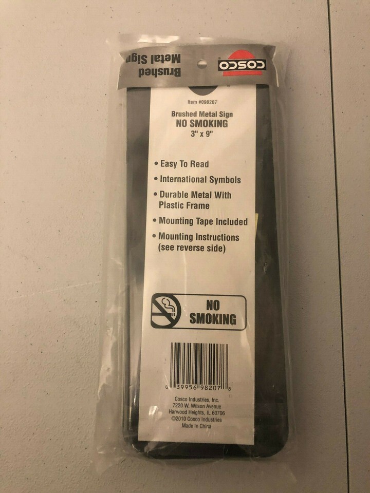 NWT's Mounting Cosco Brushed Metal " NO SMOKING " Metal Signs 3x9