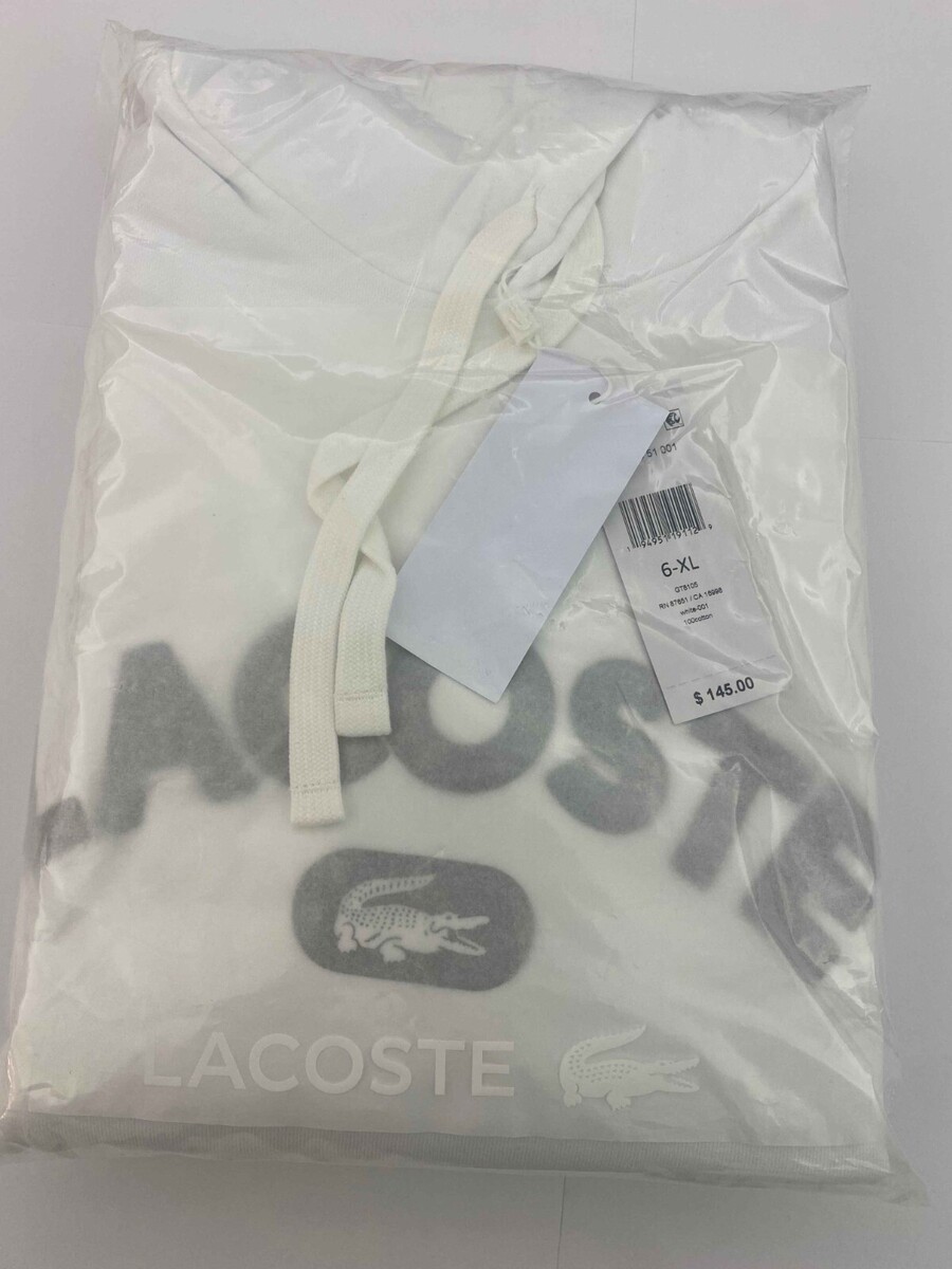 Lacoste Men's WHITE Long Sleeve Lightweight Pullover Hoodie prntd SH6876 SZ L