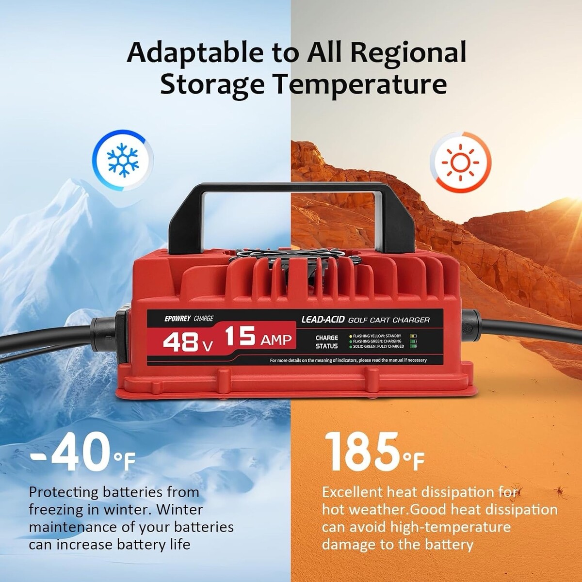 EPOWREY 15 AMP Golf Cart Charger for 48 Volt Yamaha G29 with 3 Pin Leaf Plug