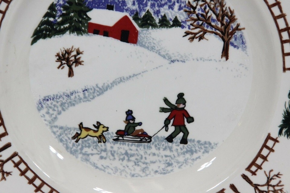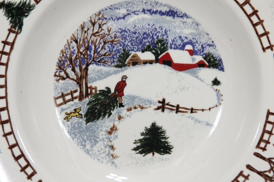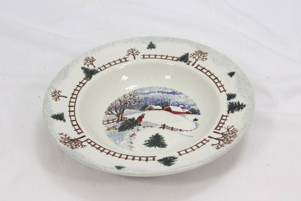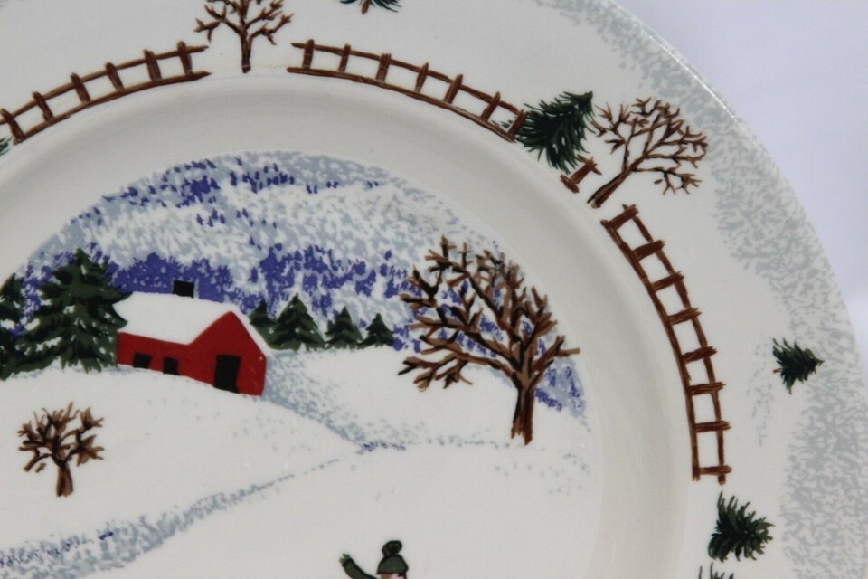 Folkcraft Winterside Salad Plates and Rim Soup Bowl Lot of 9 Christmas Xmas