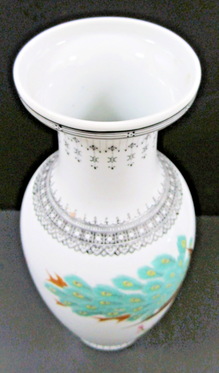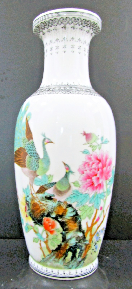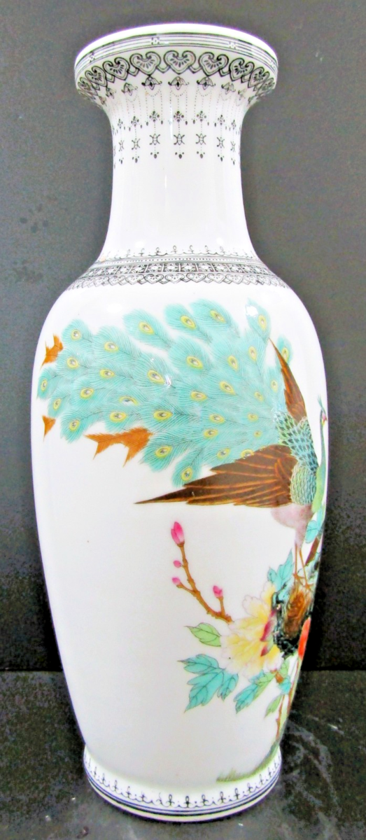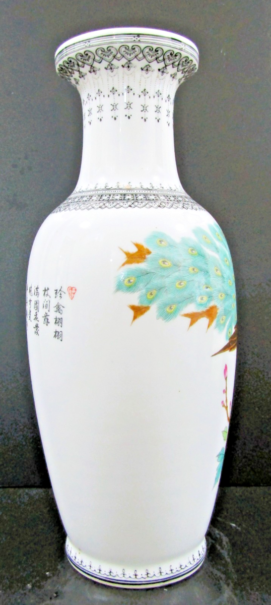 Vintage Chinese Zhongguo Jingdezhen Zhi Large Porcelain Peacock Urn Vase