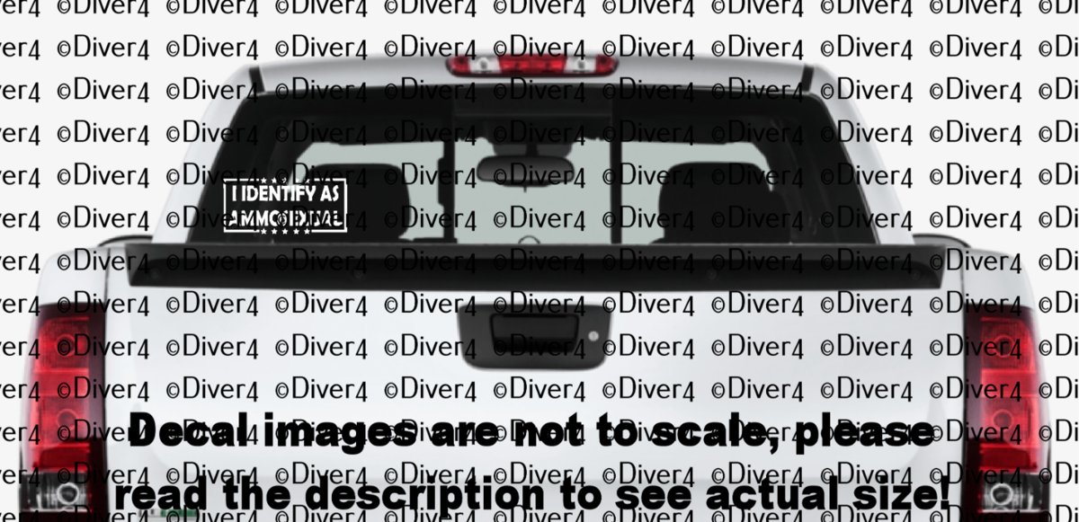 This is a custom I Identify As Ammosexual vinyl car/truck window decal bumper sticker.
