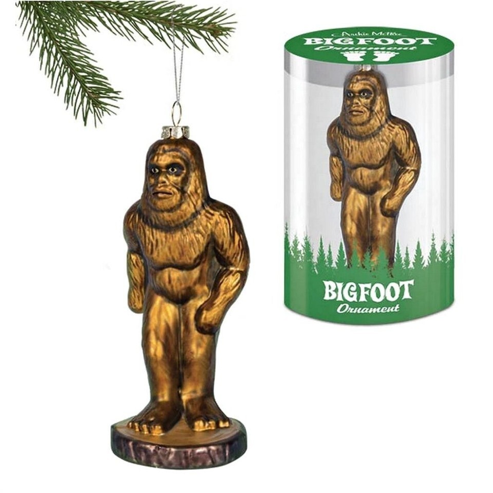 Hide this 6-1/4" (15.9 cm) tall hand-blown glass Bigfoot Ornament on your tree and your whole family becomes Bigfoot hunters. Beautifully sculpted to look like everyone?s favorite hairy forest dweller, this Bigfoot ornament includes a string for hanging, but can also stand on its own. Perfect for all Bigfoot fans! Illustrated acetate tube.