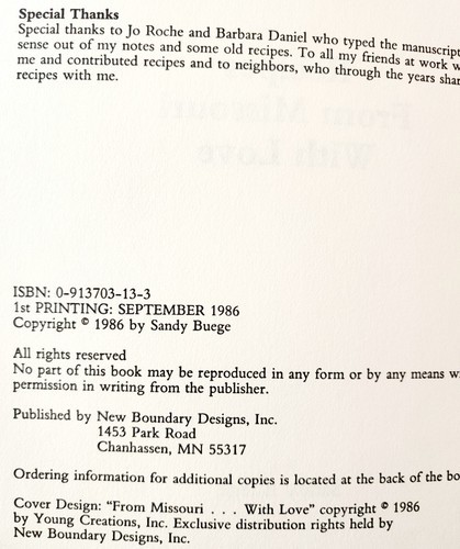 1986 Recipes From Missouri With Love Cookbook 1st Edition PB Vintage Buege C86