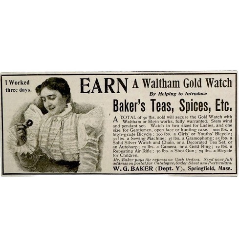 Baker's Teas Spices 1897 Advertisement Victorian Waltham Gold Watch ADBN1xxx