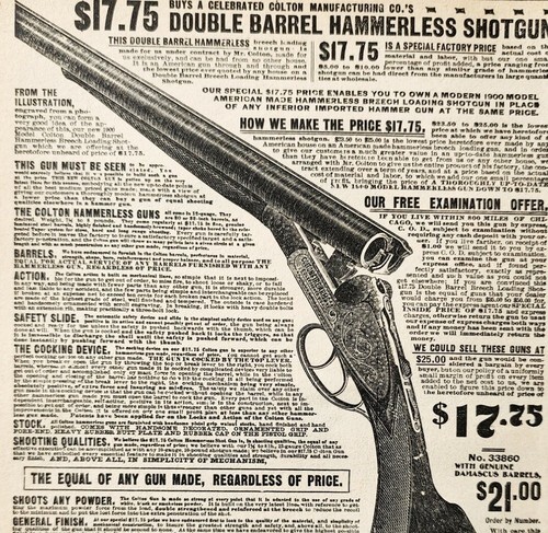 1900 Colton Double Barrel Shotgun Advertisement Victorian Sears Roebuck 5.25x7"