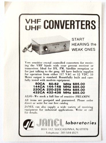 1975 Janel Laboratories VHF UHF Converters Advertisement Electronics C82QST