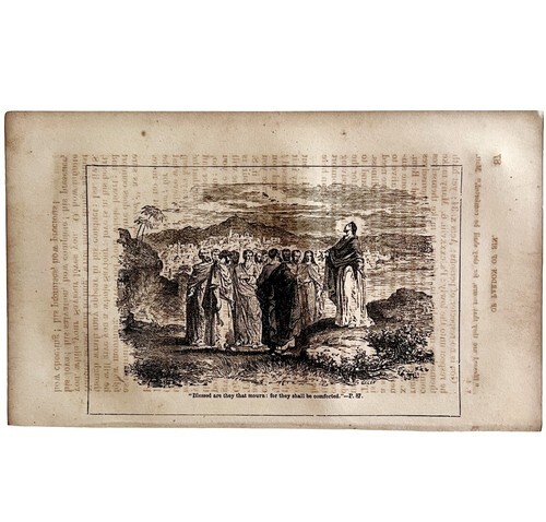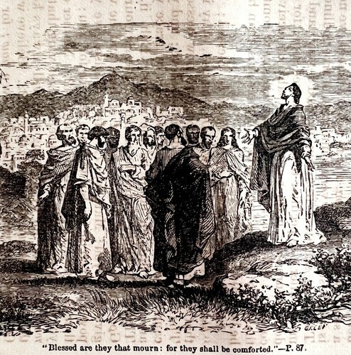 Jesus Christ Blessed Mourners 1841 Victorian Woodcut Religious Antique Art DWZ3A