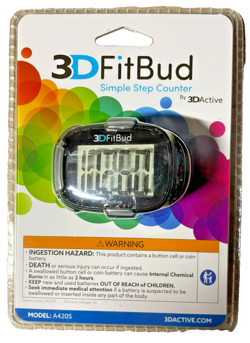 3D FitBud Simple Step Counter Pedometer Model A420S With Lanyard - Black NEW